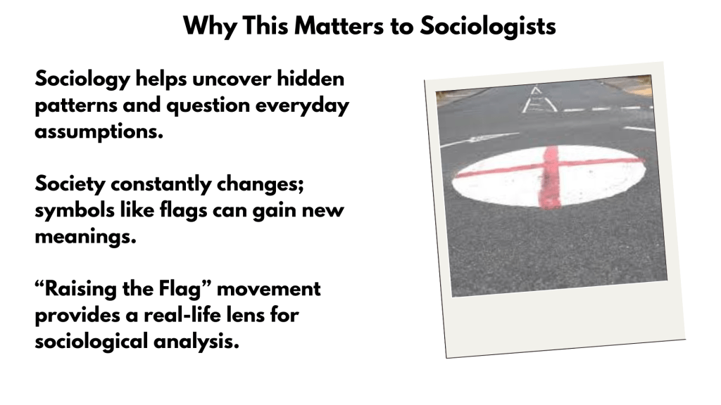 This makes the movement a perfect lens for teaching sociology: it highlights how symbols like flags are socially constructed and how their meanings shift depending on context, interaction, and individual perspective.