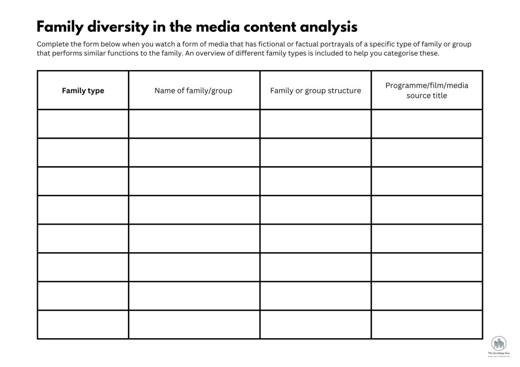 Use the material below with your students to help structure their content analysis of the different forms of family in the media.