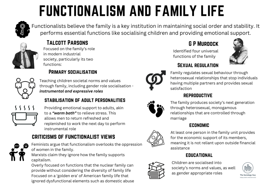 Family life is a central theme in sociology because it plays such an important role in shaping who we are, how society is organised, and how power and inequality are maintained or challenged. Sociologists have offered a range of explanations about the family – from seeing it as a positive and supportive institution, to criticising it as a site of inequality and control.