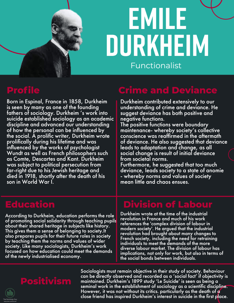 Sociology is a broad and inter-disciplinary subject area and so often there will be a broad and inter-disciplinary range of researchers discussed. However, there are some key sociologists that have laid the foundations of what we study today. On this page, I have collected together some of the most influential people in terms of sociological thought and summarised their key ideas into handy A4 sized nuggets of information. I have tried to draw from as many of the different perspectives as possible, and if your favourite sociologist isn’t here, then please do let me know. As I said, sociology is a broad discipline…